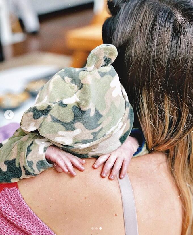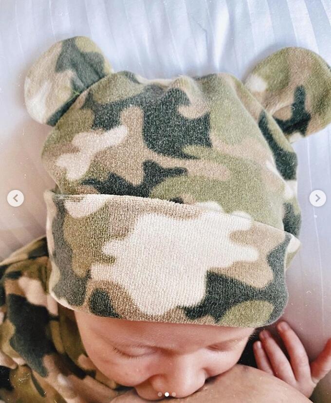 Nos cliques, Zyan aparece vestindo uma roupinha camuflada. Mãe e filho arrancaram elogios dos seguidores.