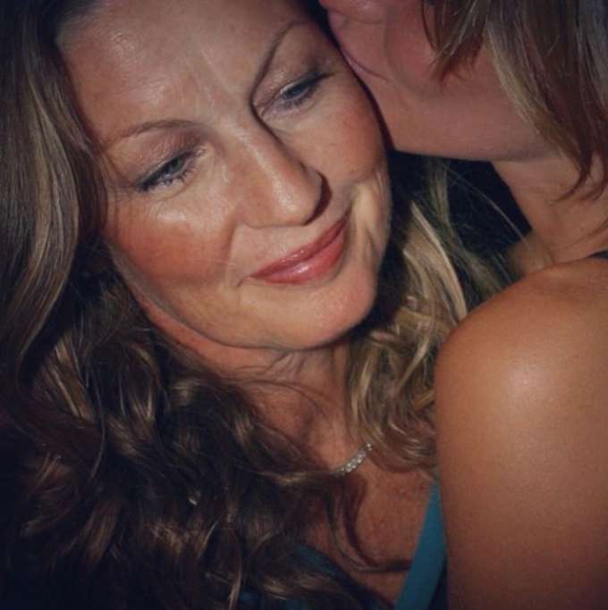Em um dos clicks, Gisele aparece sendo beijada pelos filhos, Vivian e Benjamin. Em outra, ela beija a mãe, que impressiona pela semelhança com a modelo.