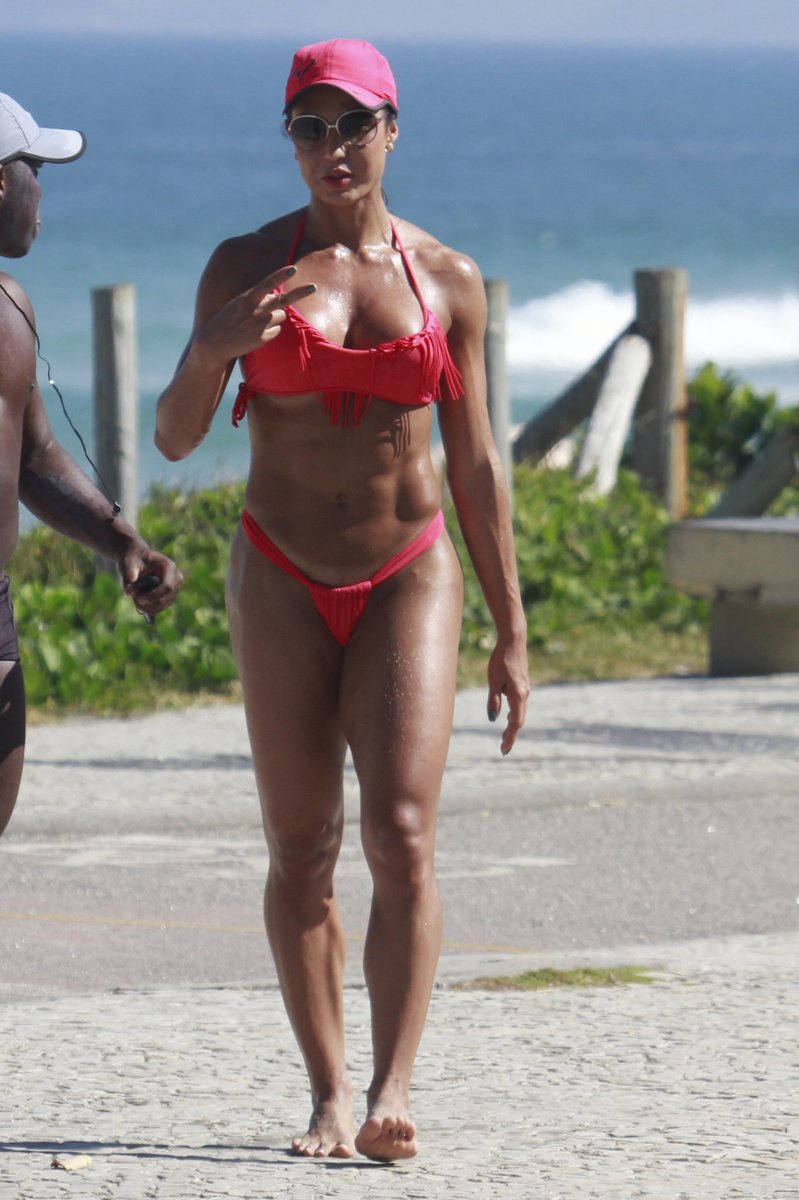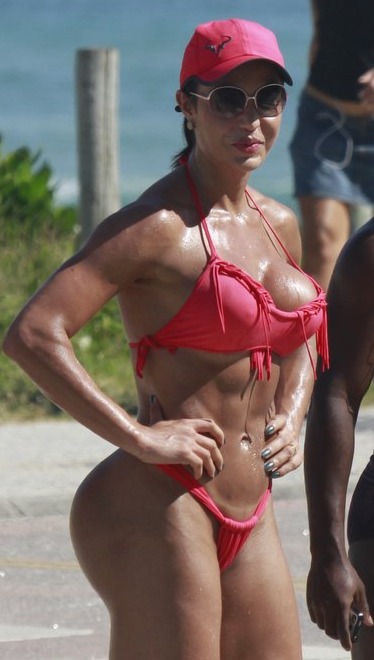 Na tarde desta quarta-feira, 15, Gracyanne Barbosa mostrou o resultado de suas horas na academia combinadas com uma dieta rigorosa, e usou um pequeno biquíni fio-dental cor-de-rosa para ressaltar os músculos.