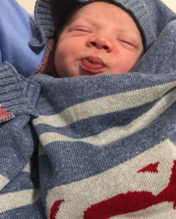 O bebê aparece vestindo uma manta do Superman. "Nosso Gabriel", colocou a modelo na legenda, com as hashtags "O melhor de mim" e "Maior amor do mundo".