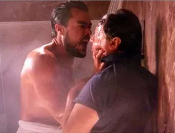 O chef agradece o aviso e vai para seu quarto, tomar banho. Quando sai do banheiro, ainda enrolado na toalha, dá de cara com Felipe, que mais uma vez exige que eles façam sexo. Com uma faca na mão, o cozinheiro o ameaça. "Baixa essa faca, Felipe, cuidado com isso, baixa a faca!", pede Enrico, apavorado. "Tá com medo? Eu posso te matar, sabia? Ou não... Ou não! Porque você pode facilitar as coisas se ficar comigo... Que tal?", ele diz, partindo para cima do filho de Beatriz (Suzy Rêgo).