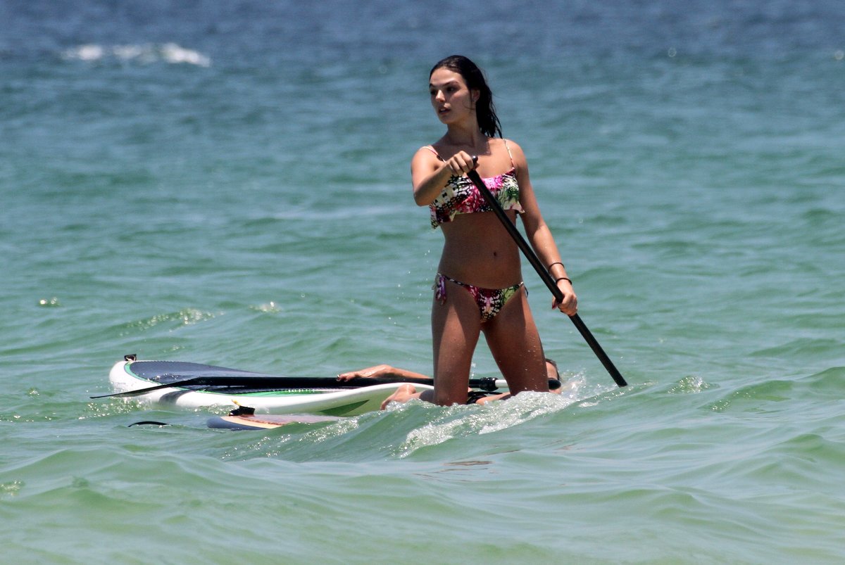 Isis Valverde está curtndo suas férias e aproveitando para relaxar nas praias cariocas. Nesta sexta-feira, a atriz - que recentemente teve sua vida tumultuada após ser apontada como pivô do fim do casamento de Cauã Reymond e Grazi Massafera -, foi à Praia da Barra da Tijuca, na Zona Oeste carioca com uma amiga, e praticou Stand Up Paddle, mostrando que está em ótima forma.