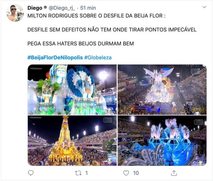 A comissão de frente com estética estilo Mad Max, e Jojô Todynho com os seis à mostra representando Xica a Rainha do Tijuco, chamaram a atenção dos internautas. O ator Edson Celulari desfilou dessa vez no chão, sem tocar na bateria.