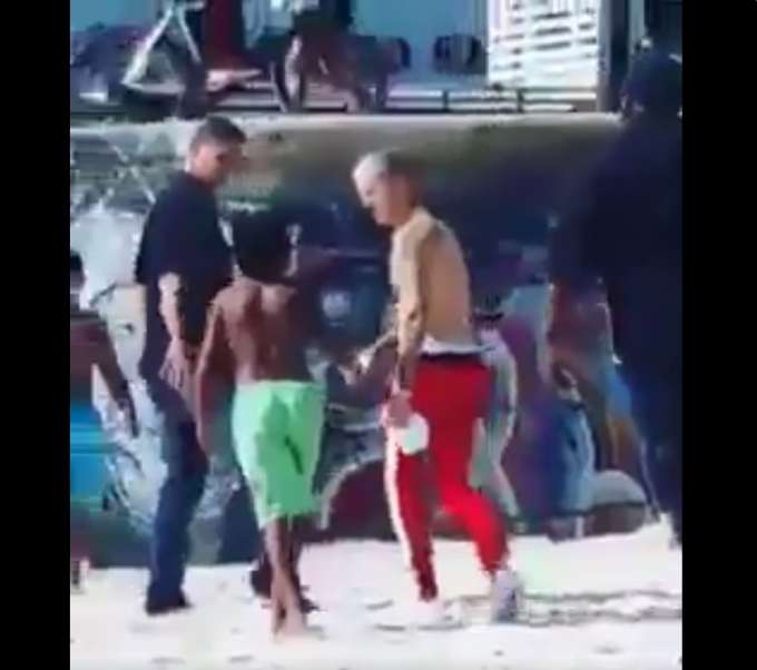 Com dois seguranças, Justin andou pela praia sem camisa e cumprimentou os fãs que ficaram alvoroçados.
