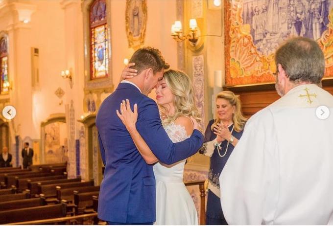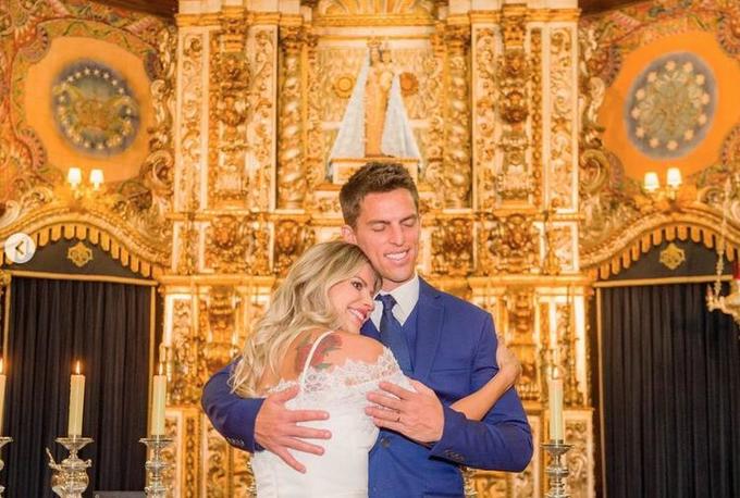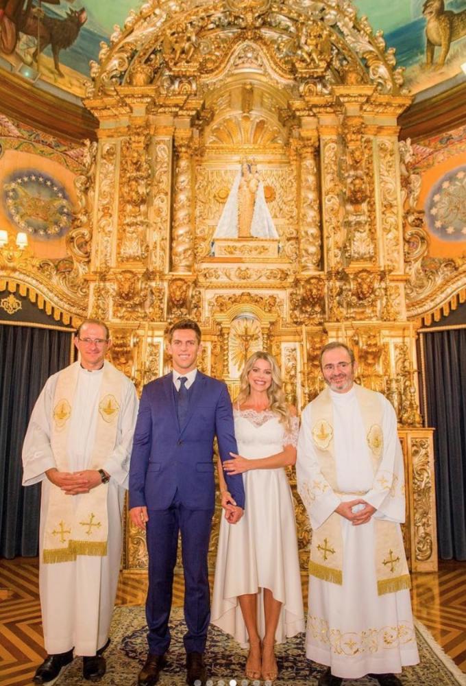“Sim! Devidamente abençoados! Obrigada Padre Michelino Roberto por celebrar e abençoar nossa união diante de Deus. Que sejamos sempre uma família baseada no amor e respeito”, escreveu.