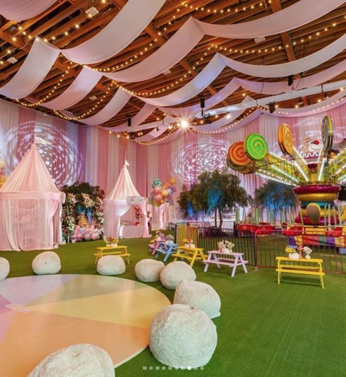 A mamãe publicou fotos do local do evento que contou com um rosto de um bebê gigante na entrada. “Eu sonhei com esta festa e depois desenhei no papel, sala por sala. Essa festa foi mágica”, escreveu a empresária de 21 anos.