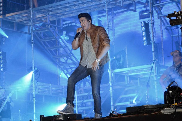 Luan Santana resolveu fazer a alegria de uma fã e tirou a moça da plateia para dançar coladinha com o rapaz no palco. O sertanejo cantou na