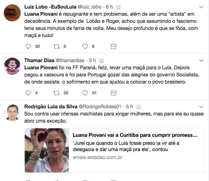 Tanto nos comentários do posts de Luana como no Twitter, vários internautas estão detonando a atitude da atriz. “É querer se aparece a qualquer custo. Vindo de quem vem, até que é justificável. Fico só imaginando seu “objeto” de estudo”, disse um seguidor.
