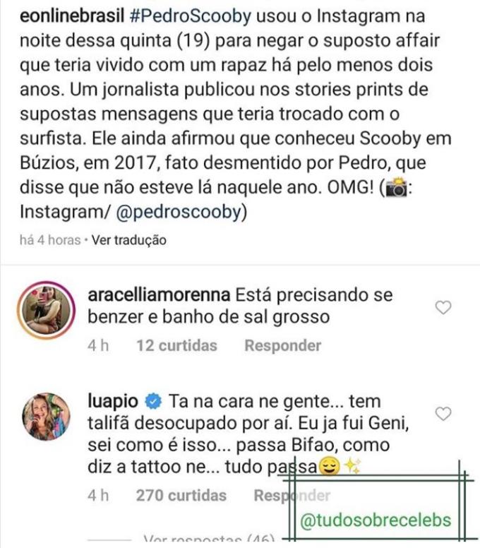 Luana Piovani resolveu comentar sobre a polêmica envolvendo o ex-marido, Pedro Scooby, que teve uma suposta conversa vazada em que teria um caso gay com o jornalista Luan Santos.
