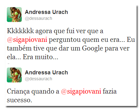 Quando a ex-dançarina do Latino e Miss Bumbum viu o comentário, deu a entender não só que não lembrava da atriz, como praticamente a chamou de 'velha'.