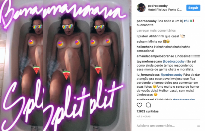 Pedro Scooby adora ousar e postar fotos sensuais de Luana Piovani em momentos íntimos do casal.