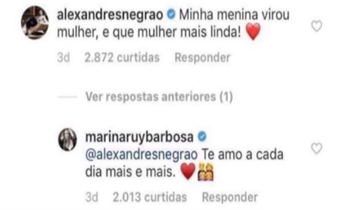 Os seguidores de Marina Ruy Barbosa estão em alvoroço por conta de uma simples troca de comentários entre a atriz e o marido, Alexandre Negrão .