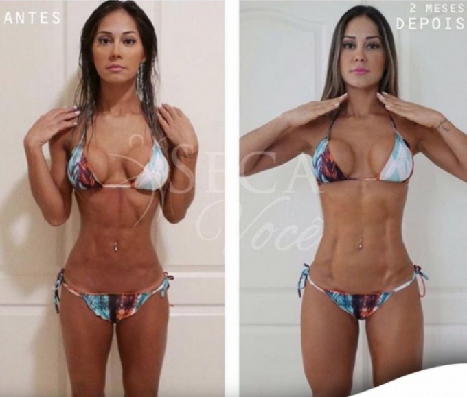 Depois de dois meses, ela conseguiu recuperar a boa forma sem ganhar gordura e relembrou o 'antes e depois' nesta quinta-feira (4), na conta da sua empresa fitness, o Seca Você Renove, no Instagram.