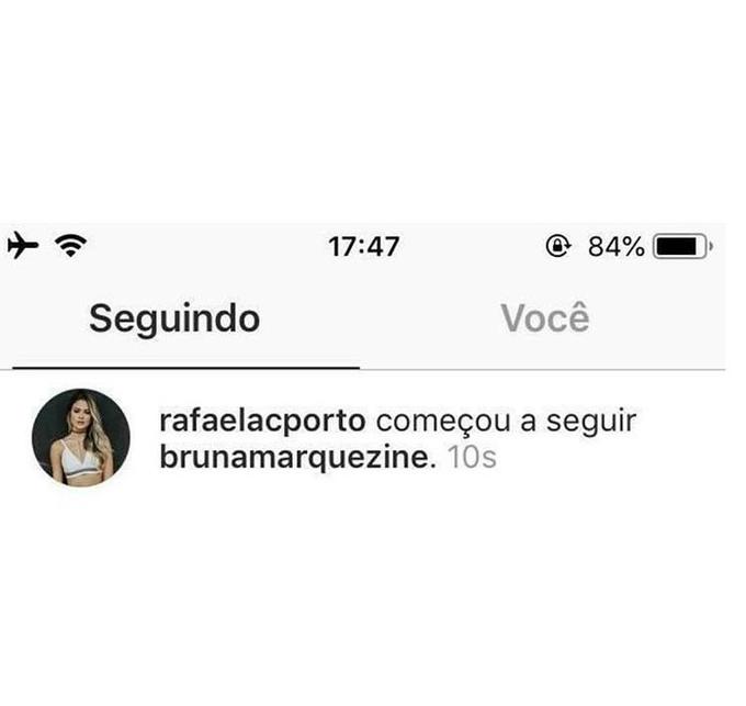 Logo em seguida, no entanto, Rafaela parece ter se arrependido, já que Bruna não está mais na sua lista de seguidores.
