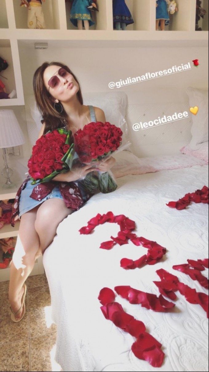 Leo Cidade resolveu se declarar para Larissa Manoela no aniversário de 3 meses de namoro com pétalas de rosas na cama da namorada.