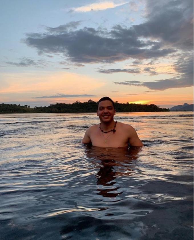 Wesley Safadão está em São Gabriel da Cachoeira, no Amazonas, onde realizou um show e aproveitou a folga nessa terça (3) para se refrescar no Rio Negro.