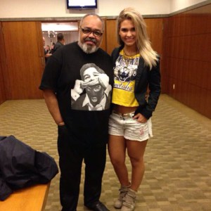 Smigol, do Comédia em Pé com a atriz e modelo Gabi D`Avila. O mestre Jorge Aragão com Gabi D`Avlia. (Foto: Marcio Lima/MF Models Assessoria)