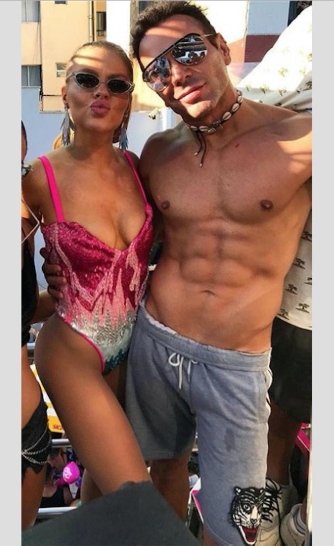 Mateus Mazzafera preferiu um short básico. Ao lado dele, Luisa Sonza, que usou um boy pink com paetê.