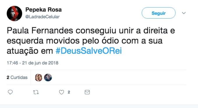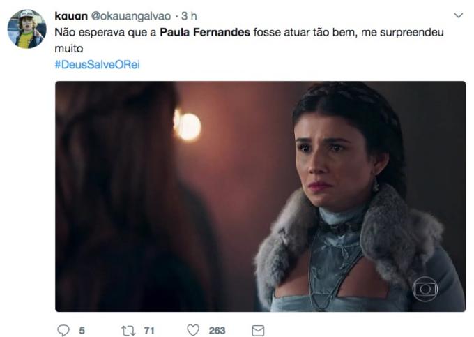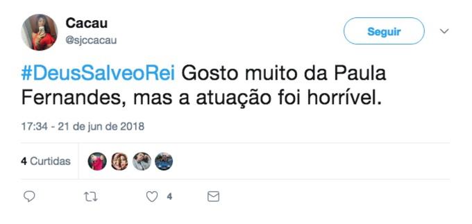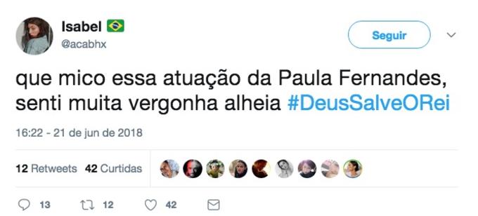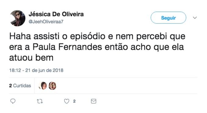 Muitos elogiaram e se surpreenderam, já que é a primeira vez que Paula interpreta uma personagem, enquanto alguns detonaram a atuação da cantora.
