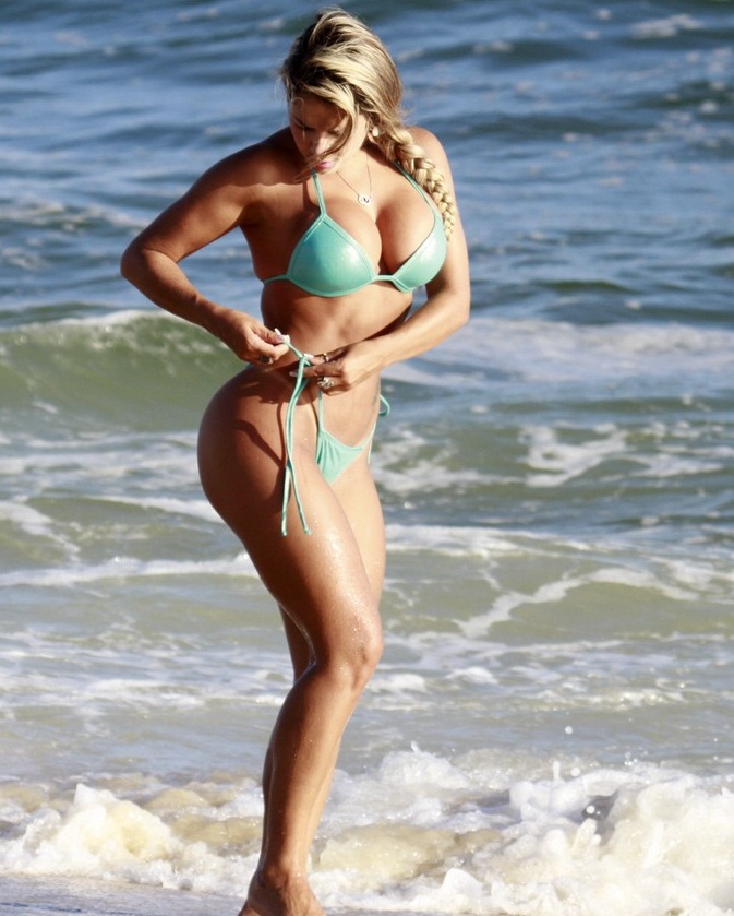 Usando um biquíni no mínimo provocante, a loiraça curtiu o mar da praia da Barra da Tijuca, no Rio de Janeiro, e aproveitou a presença dos fotógrafos para sensualizar nas areias.