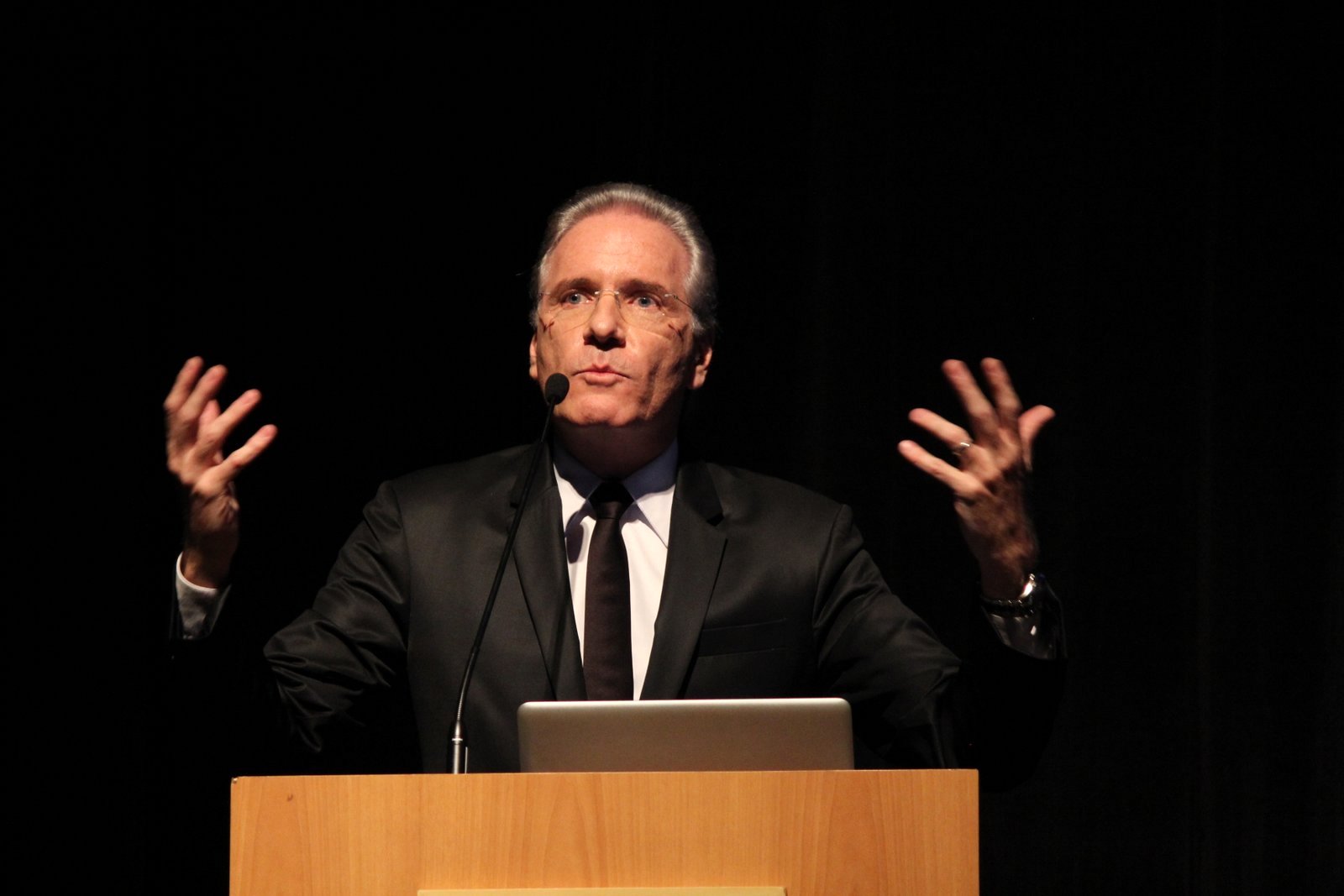 Durante a apresentação quando ele precisou de óculos para leitura, ele brincou com a plateia e disse que a velhice está chegando.