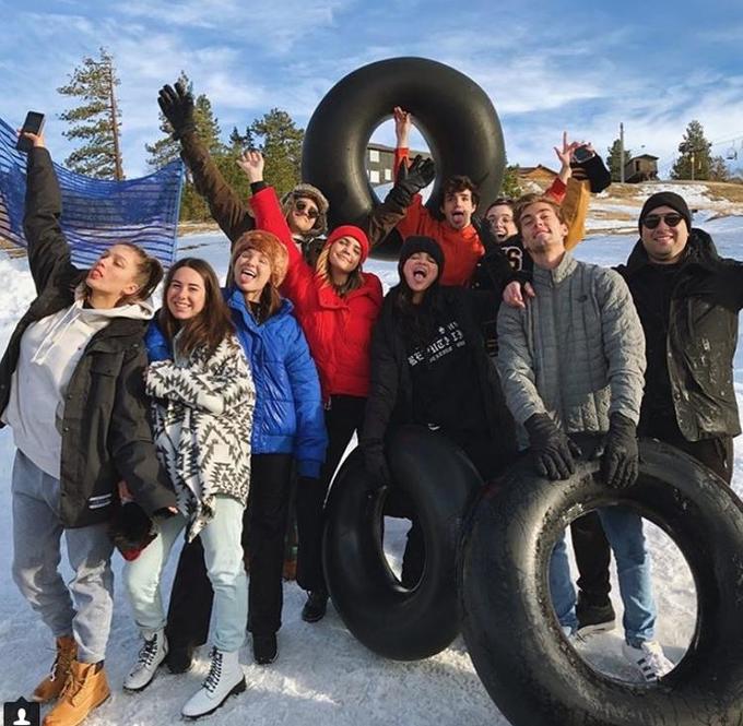 A cantora de 26 anos, que tem depressão e ansiedade - sintomas da doença lúpus - apareceu mega sorridente e com uma aparência muito saudável, em fotos ao lado de amigos, na nevada cidade de Big Bear Lake, na Califórnia.