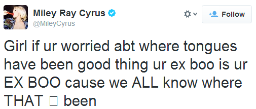 Miley não gostou nada dessa declaração, e em seu twitter mandou um recado.