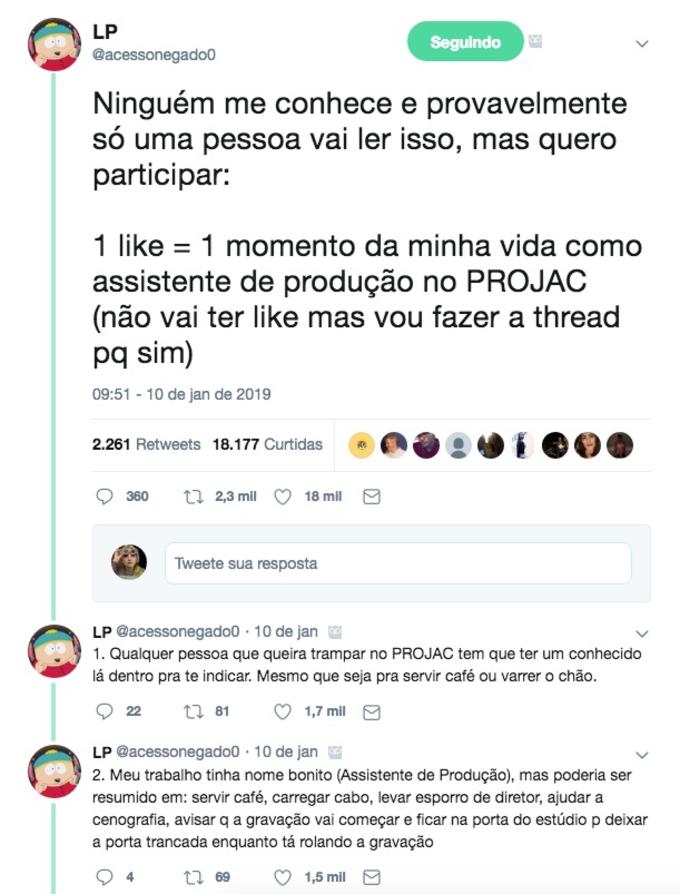 Na rede social, o internauta alega que trabalhou entre 2005 e 2012, como assistente de produção, e em novelas como Belíssima (2006) e Insensato Coração (2011), e diz que hoje em dia, anos depois da experiência global, mora em Manaus.