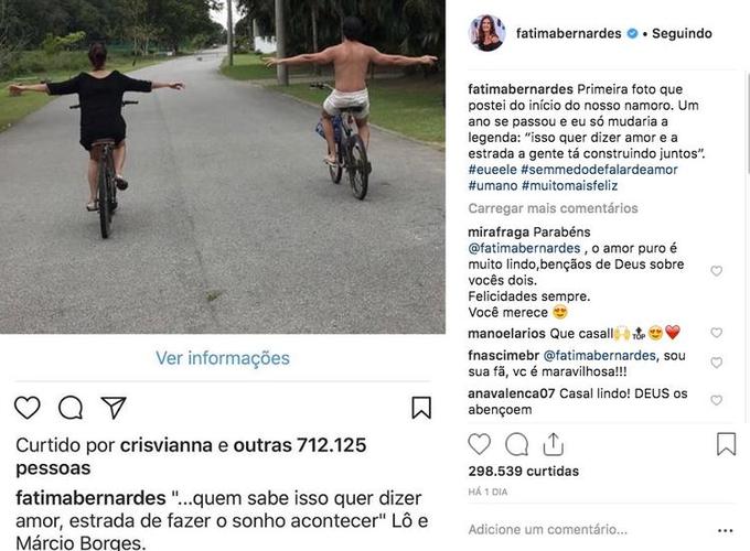 Fátima também fez um post sobre o romance, postando uma foto que havia publicado no início do namoro.