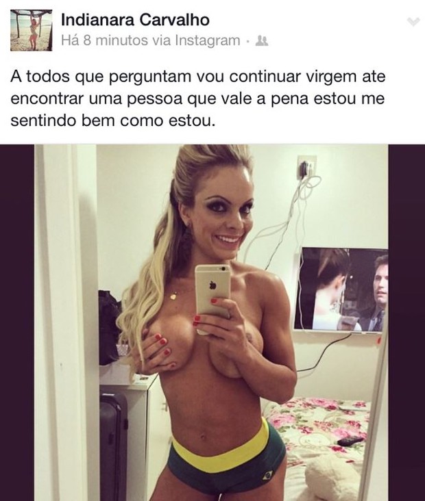 "A todos que perguntam vou continuar virgem até encontrar uma pessoa que vale (sic) a pena, estou me sentindo bem como estou".