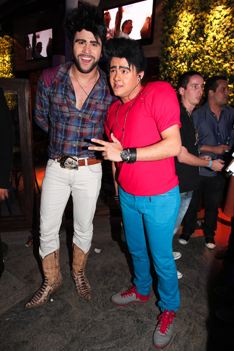 Marcelo Ye Ye (caracterizado de Gusttavo Lindo), Rodrigo Scarpa com a namorada e Gui Santana (Caracterizado de Luan Sacana). Créditos: Manuela Scarpa/Foto Rio News