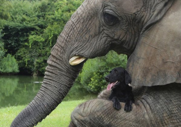 Uma fêmea de labrador e uma aliá africana, respectivamente, se conheceram em uma reserva chamada Myrtle Beach Safari, na Carolina do Sul, e desde então se tornaram amigas inseparáveis.