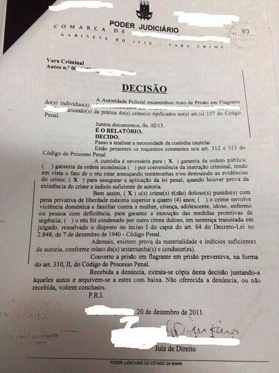 O magistrado tascou um X nas alternativas “garantia da ordem publica” e “assegurar a aplicação da lei penal”. E por aí se foi, até converter a prisão em flagrante em prisão preventiva...