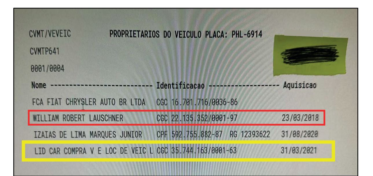 Os veículos tratam-se de um Jeep Renegade e uma Van da marca Mercedes. E para relembrar o caso, Alemão também emprega no gabinete dele, Camilla Anunciação Ramalhosa Muller, que é cunhada da proprietária da LID Car, Luciana Muller Dobbins.