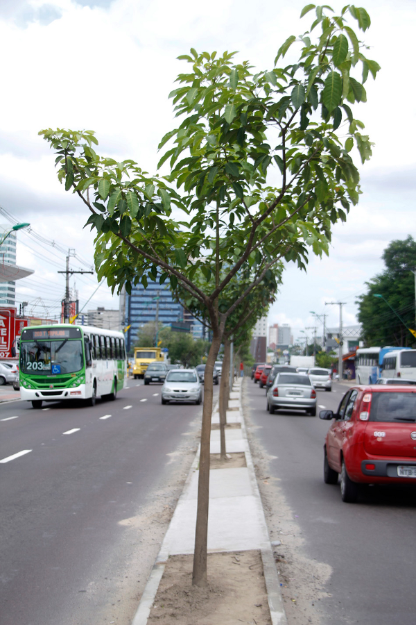 Já foram plantadas 12 mudas de espécies nativas da região amazônica, mas a arborização contemplará todo o passeio público da avenida. Para cada muda, está sendo colocado um gradil de proteção com frases educativas que procuram envolver a população nas ações da Prefeitura de Manaus.