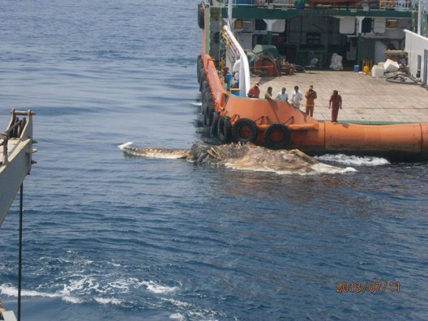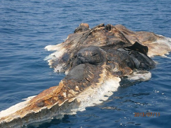 Esta criatura estranha foi encontrada pelo navio da Marinha iraniana no Golfo Pérsico. Ele estava fedendo muito. O que será isso?