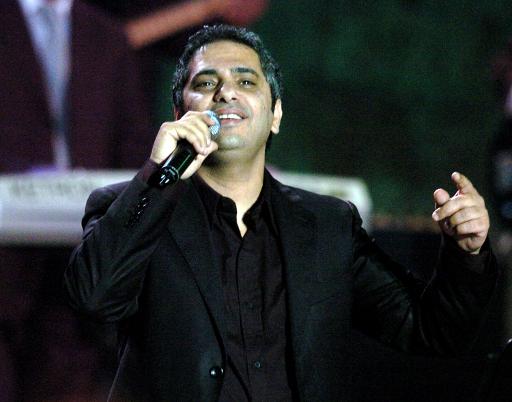 ©afp.com / Fethi Belaid - O ex-cantor libanês, Fadel Shaker, se apresenta no Festival Internacional de Cartagena, em 15 de agosto de 2007 de 2013