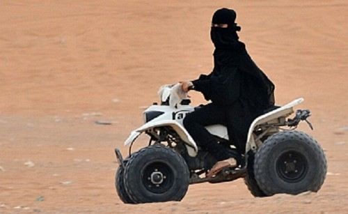 Em 2013, um abrandamento da lei passou a permitir que as sauditas pilotem bicicletas, motocicletas, triciclos e quadriciclos (como os da foto abaixo, feitas em parque nos arredores de Riad) .Mas as mulheres só poderão pilotar em áreas restritas à recreação e usando as tradicionais vestes islâmicas. Além disso, elas deverão, segundo a agência AFP, estar acompanhadas de um parente do sexo masculino.