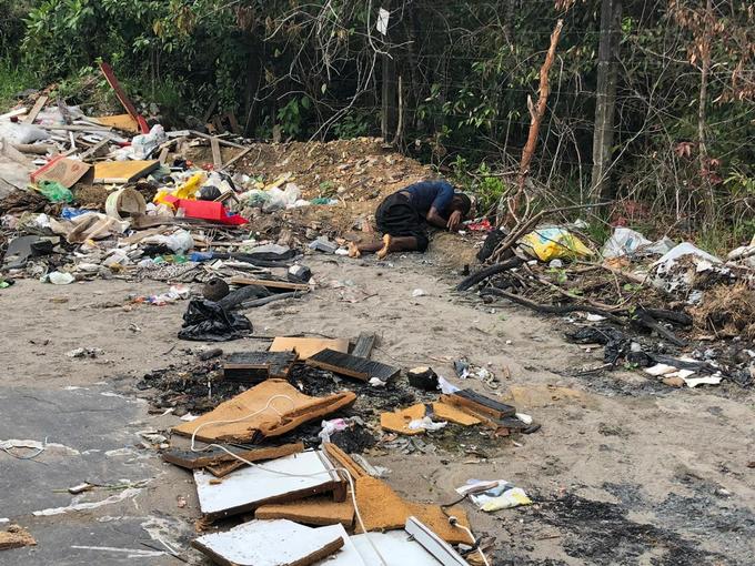 A vítima estava jogado de bruços em meio ao despejado no local. A polícia acredita que ele tenha sido desovado ainda na madrugada.