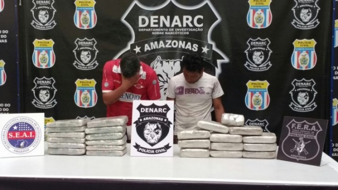 Manaus / AM - O auxiliar de cozinha Jorge Penha Padilha, 28, e o técnico de informática Sildomar Gonçalves da Silva, 37, foram presos em flagrante durante uma operação simultânea da Polícia Civil na tarde desta terça-feira (12). Com eles foram apreendidos 23 quilos de maconha do tipo skunk.