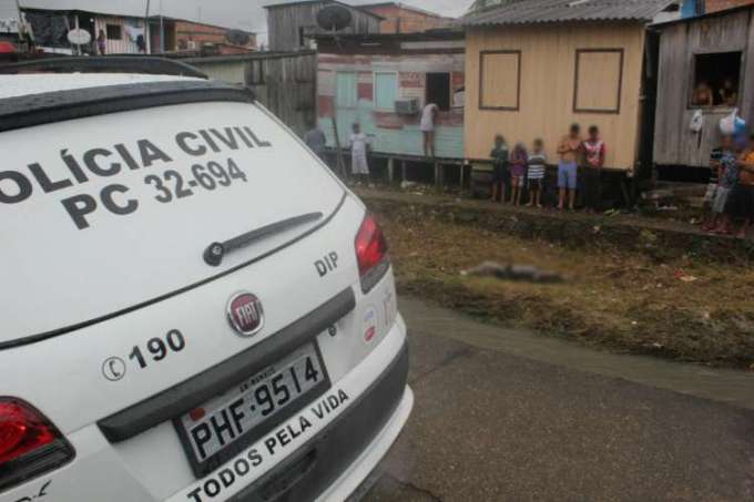 Segundo moradores, o corpo em estado de decomposição apareceu no local em meio a enxurrada e alguns populares puxaram o corpo para a beira do igarapé. O homem está com calção e blusa preta.