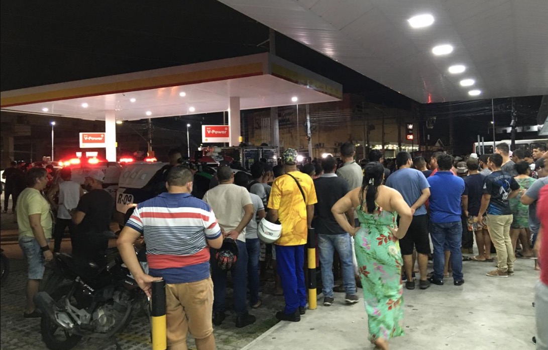 Instantes depois, uma aglomeração de pessoas e carros de colegas motoristas se formou na cena do crime, no posto de combustível.