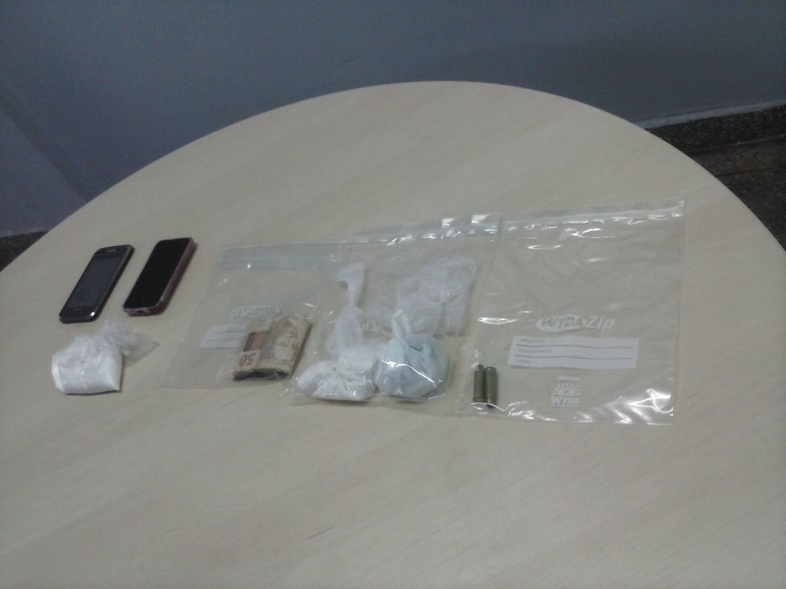 Foi preso durante cumprimento de mandado de busca e apreensão, Everton dos Santos da Silva, 21. O mandado foi expedido em 6 de junho deste ano, pela Juíza plantonista Eulinete Melo Silva Tribuzy, da 4ª Vara Especializada de Uso e Tráfico de Entorpecentes (Vecute). Na casa dele, localizada na rua Encontro das Águas, no bairro Mauzinho, foram encontrados 17 papelotes de substância aparentando ser maconha, uma porção média de cocaína, duas munições intactas, calibre 38 e R$ 202 em dinheiro, o material foi encontrado dentro de uma mochila.