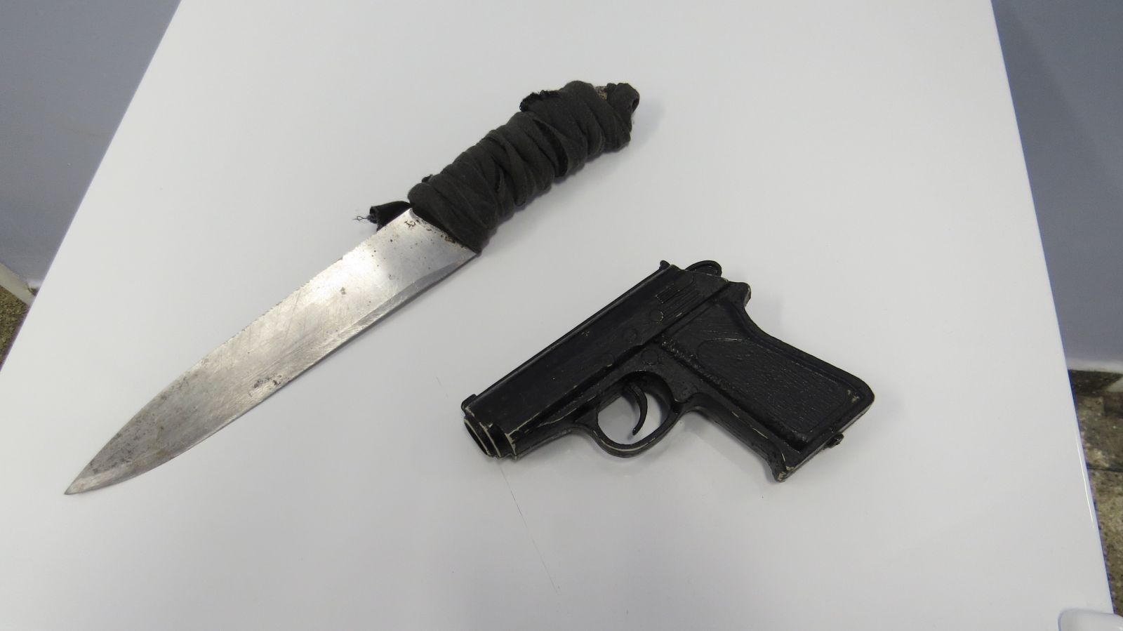 Conforme as informações repassadas pela equipe, Guilherme foi preso por volta das 15h, na rua Boulevard Sá Peixoto, bairro Educandos, na Zona Sul da cidade. A polícia foi comunicada por meio de uma denúncia anônima informando que o homem estaria armado e prestes a cometer assalto a um ponto comercial. Com ele estava um comparsa, identificado por Lucas Silva dos Santos, 19, com quem foi encontrado uma faca e um simulacro, ou seja, arma de brinquedo.