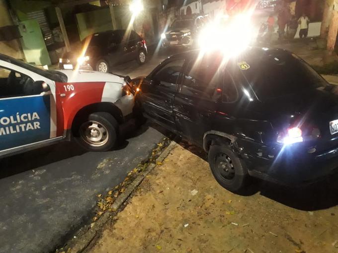 Ao avistar o suspeito saindo com o carro, os PMs iniciaram perseguição e alguns metros depois conseguiram encurralar o veículo que cheogou a colidir cm uma das viaturas.