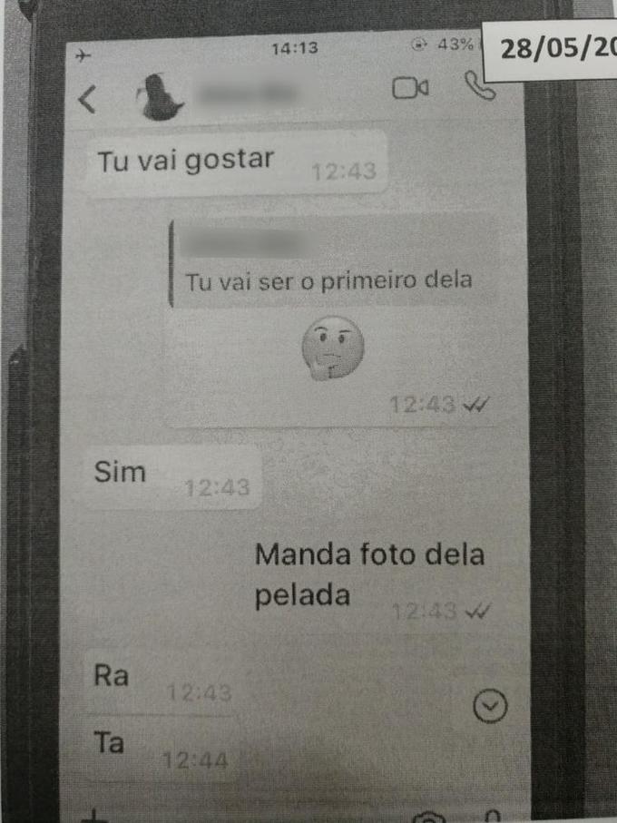 Conforme a polícia, no aparelho foram encontradas diversas conversas entre ele e a tia da adolescente, suspeita de agenciar programas. Um trecho de uma conversa encontrada pela polícia, a tia da menina diz que tem uma outra garota virgem para o empresário. "Tu vai ser o primeiro dela", diz. Ele se interessa e pede foto da vítima nua.