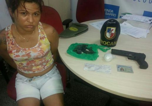 Os policiais apreenderam em poder da traficante cocaína, pasta báse, oxi, uma pistola e R$ 2.500,00.
