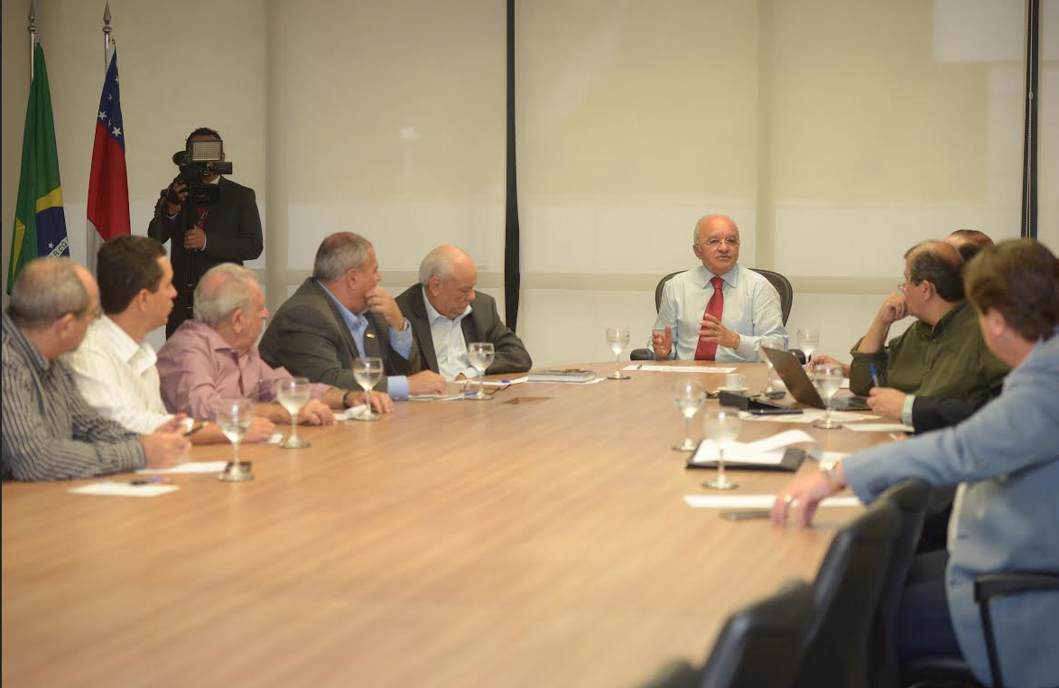 O governador José Melo reuniu-se na manhã desta quarta-feira, dia 8 de abril, com representantes de entidades de classe da indústria, comércio e setor primário, além de empresários, na sede do Governo. A iniciativa faz parte da estratégia do Governo em envolver os setores produtivos do Estado no enfrentamento à atual crise econômica e na busca de uma nova política de diversificação da matriz econômica do Amazonas.