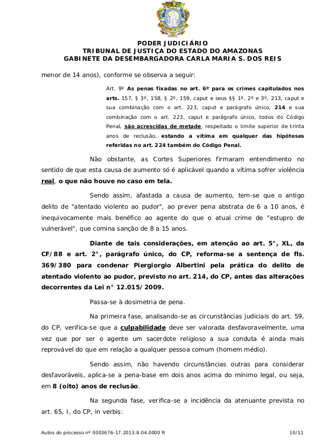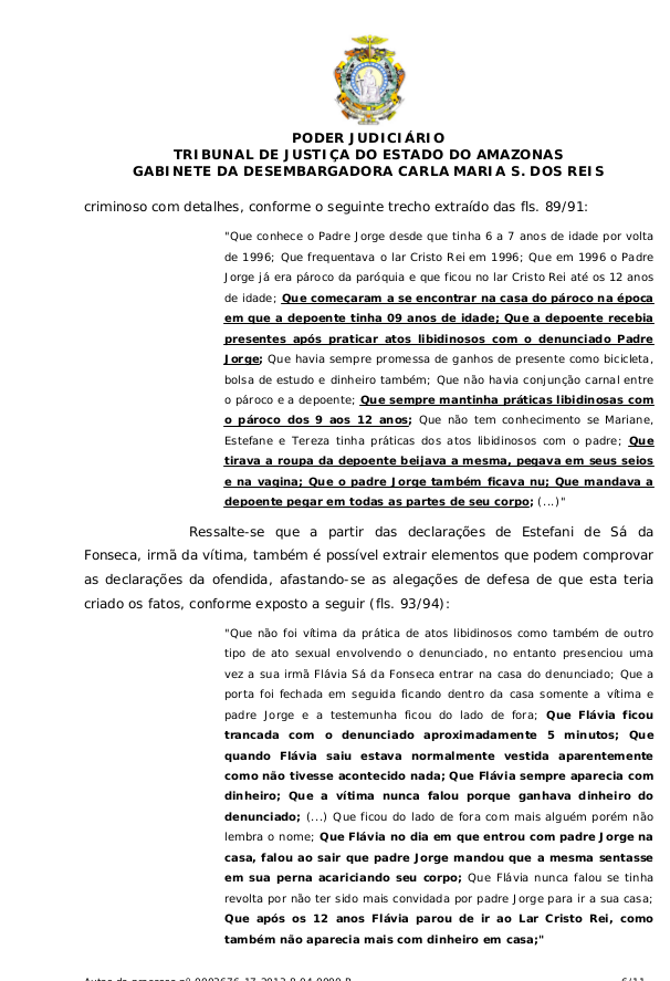 Leia decisão que beneficia, com a prescrição, padre que violentava criança no interior do Amazonas