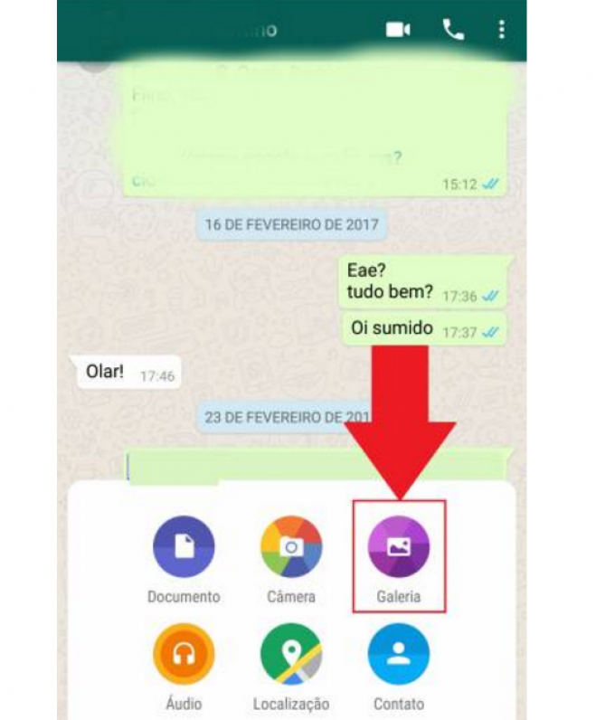 2. Uma vez baixado o vídeo, abra o WhatsApp, vá até a conversa na qual você quer compartilhá-lo e clique no ícone de clip no canto inferior direito;